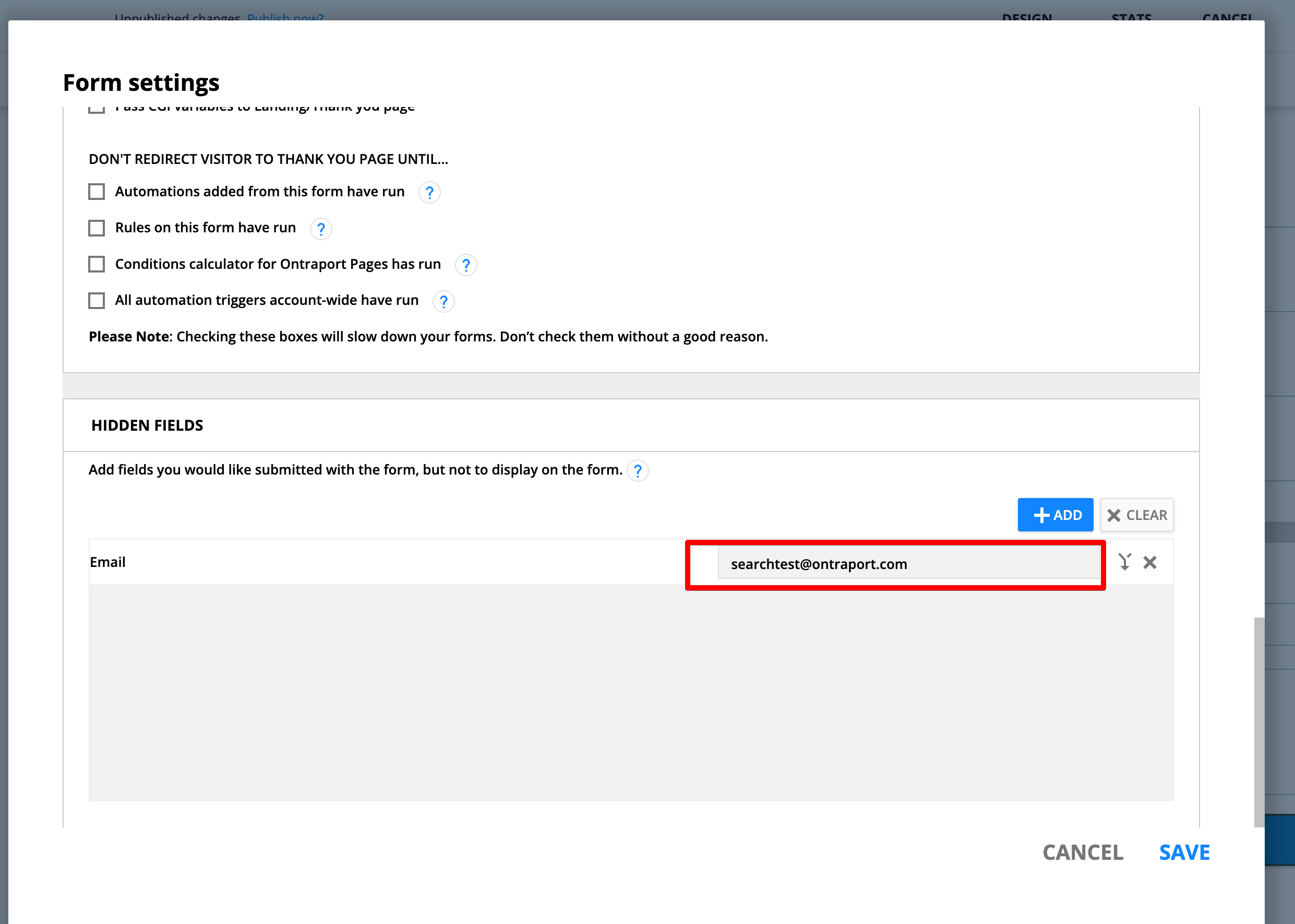 1. The next step is to formulate the URL and add it into the 'Custom URL' section of the form settings. This allows for people to enter in values into the form, and have the URL populate with those values in order to display only the records that match.